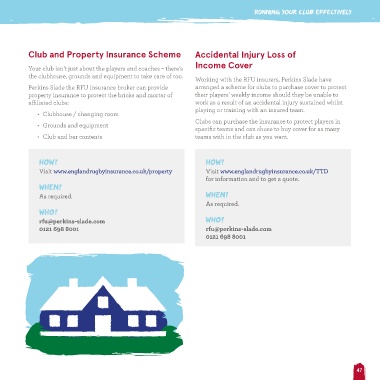 commercial and residential property related matters, implement sound financial management. Developing Perkins Slade the RFU insurance broker can provide arranged a scheme for clubs to purchase cover to protect