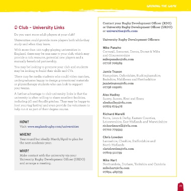 Club - Schools Links Club - Colleges Links Club - University Links or University Rugby Development Officer (URDO)